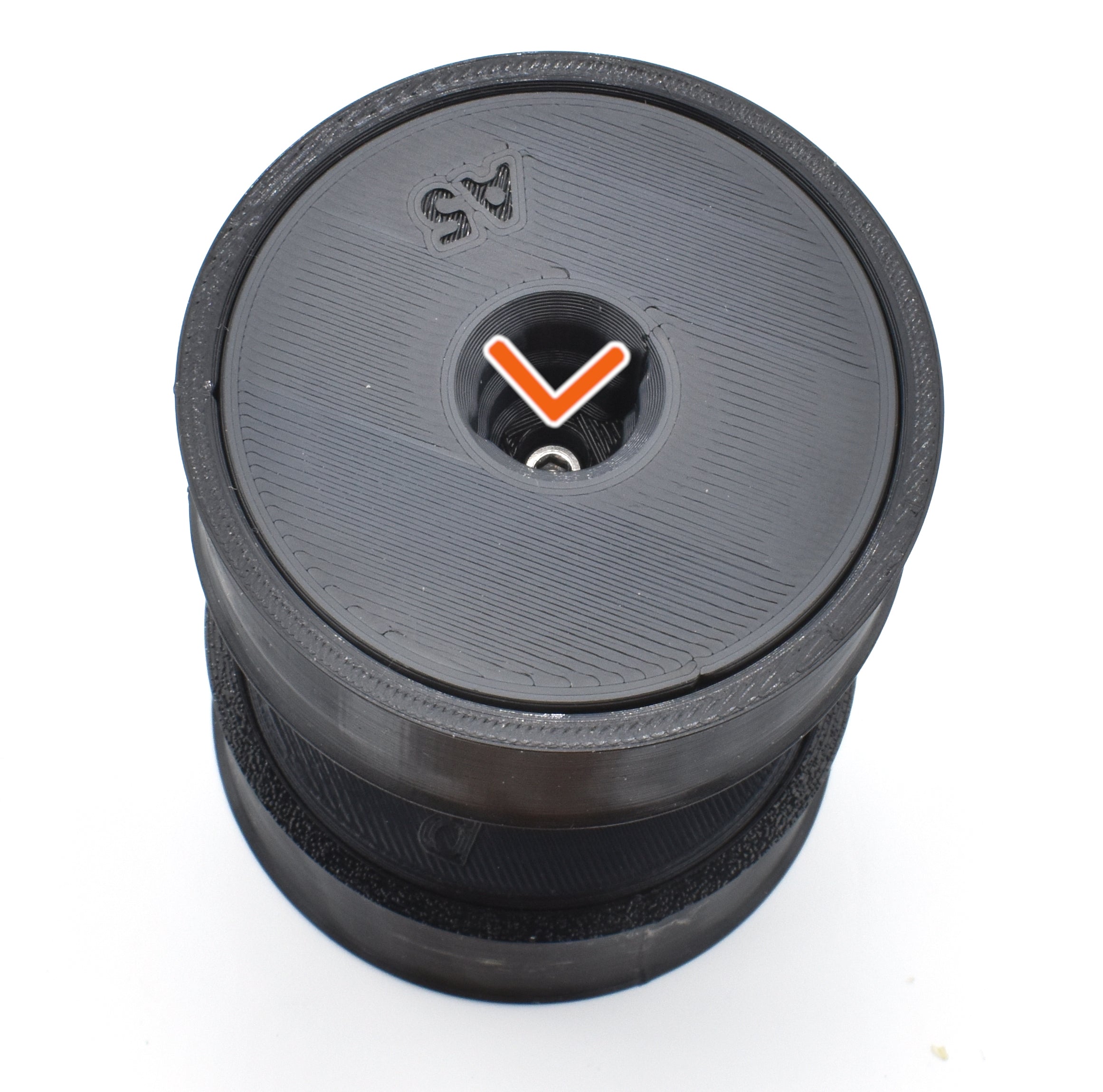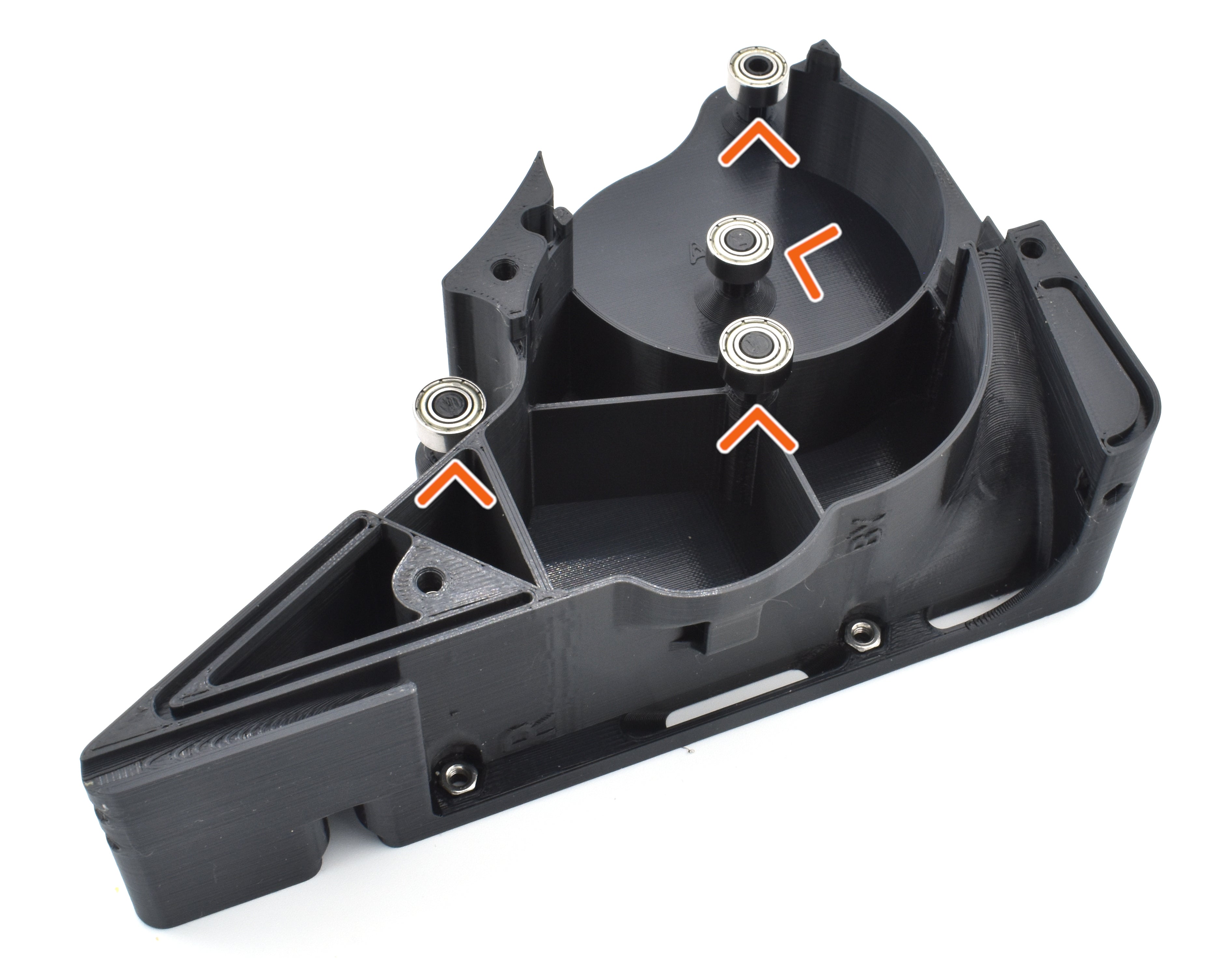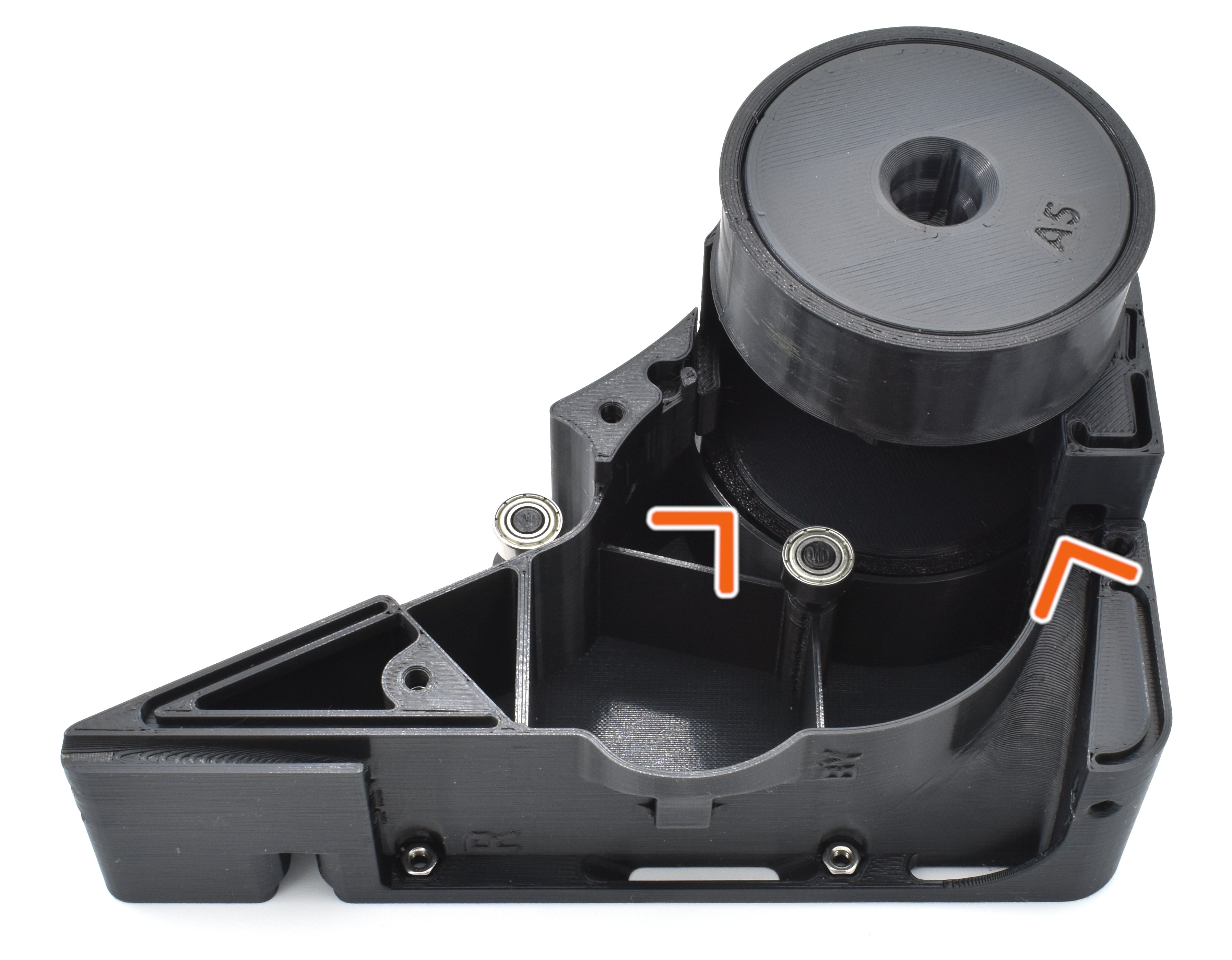 Attach the Front-roller and PTFE-Guide to the R-Shell. The Front-roller attaches to one of the bearings.