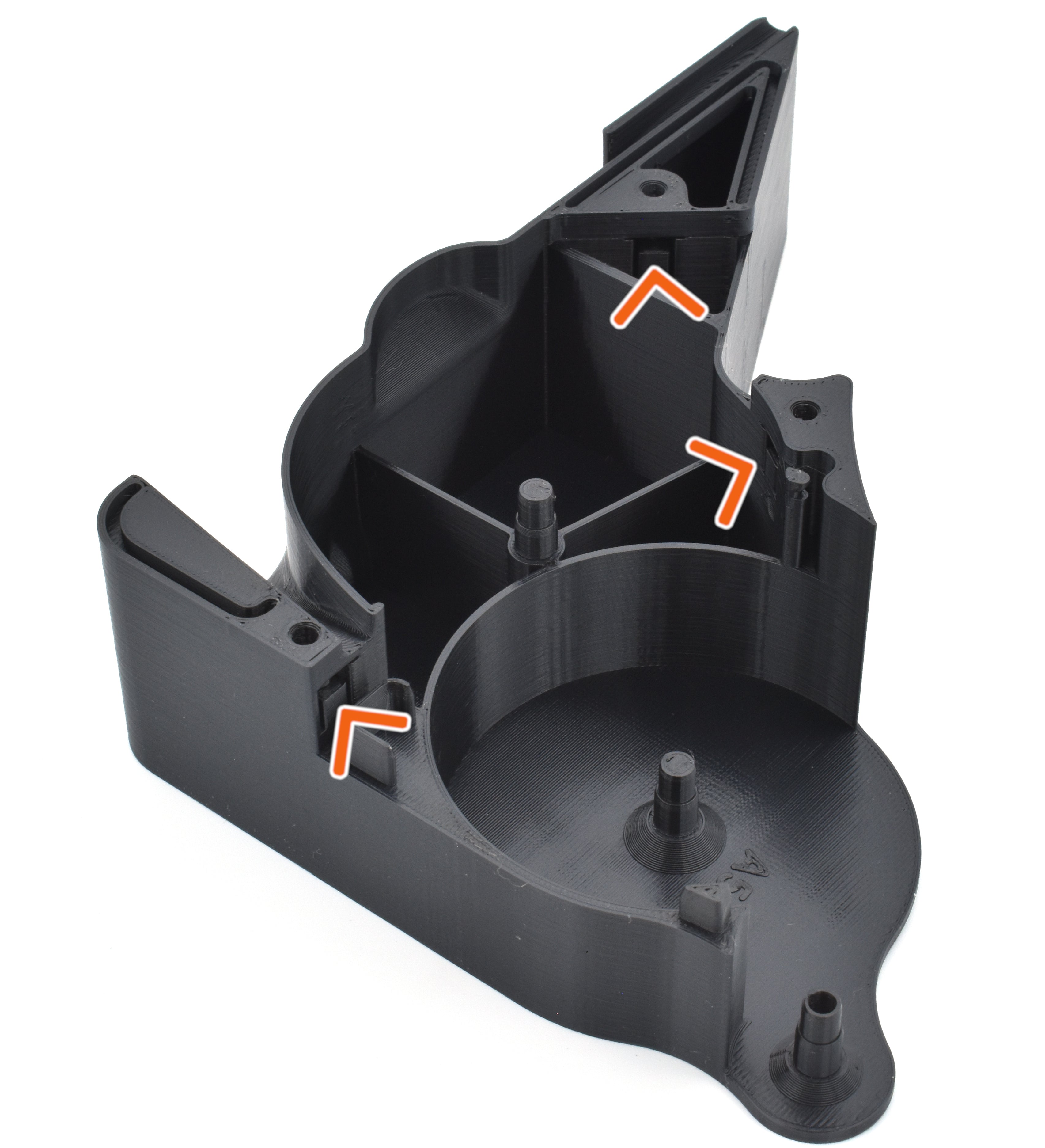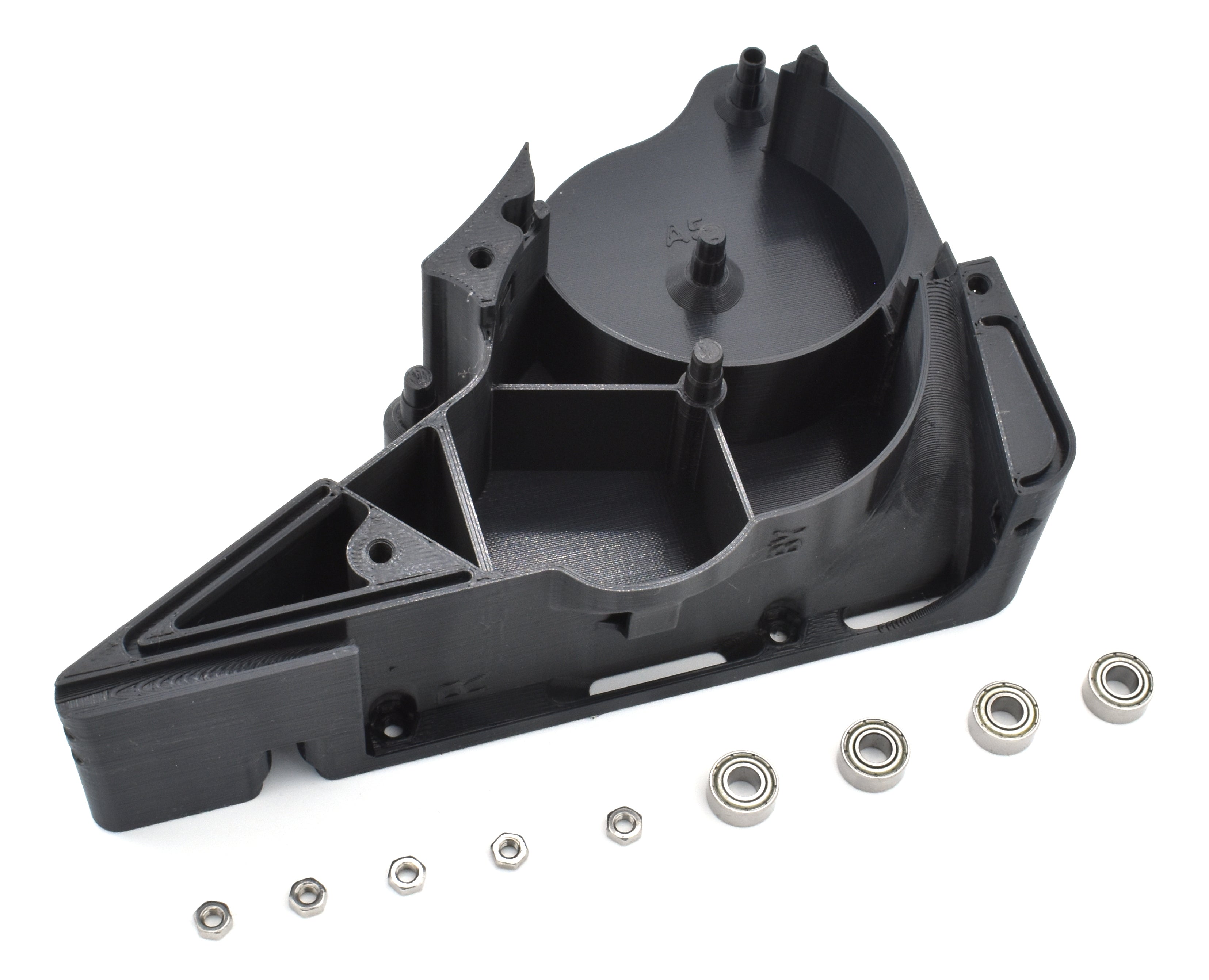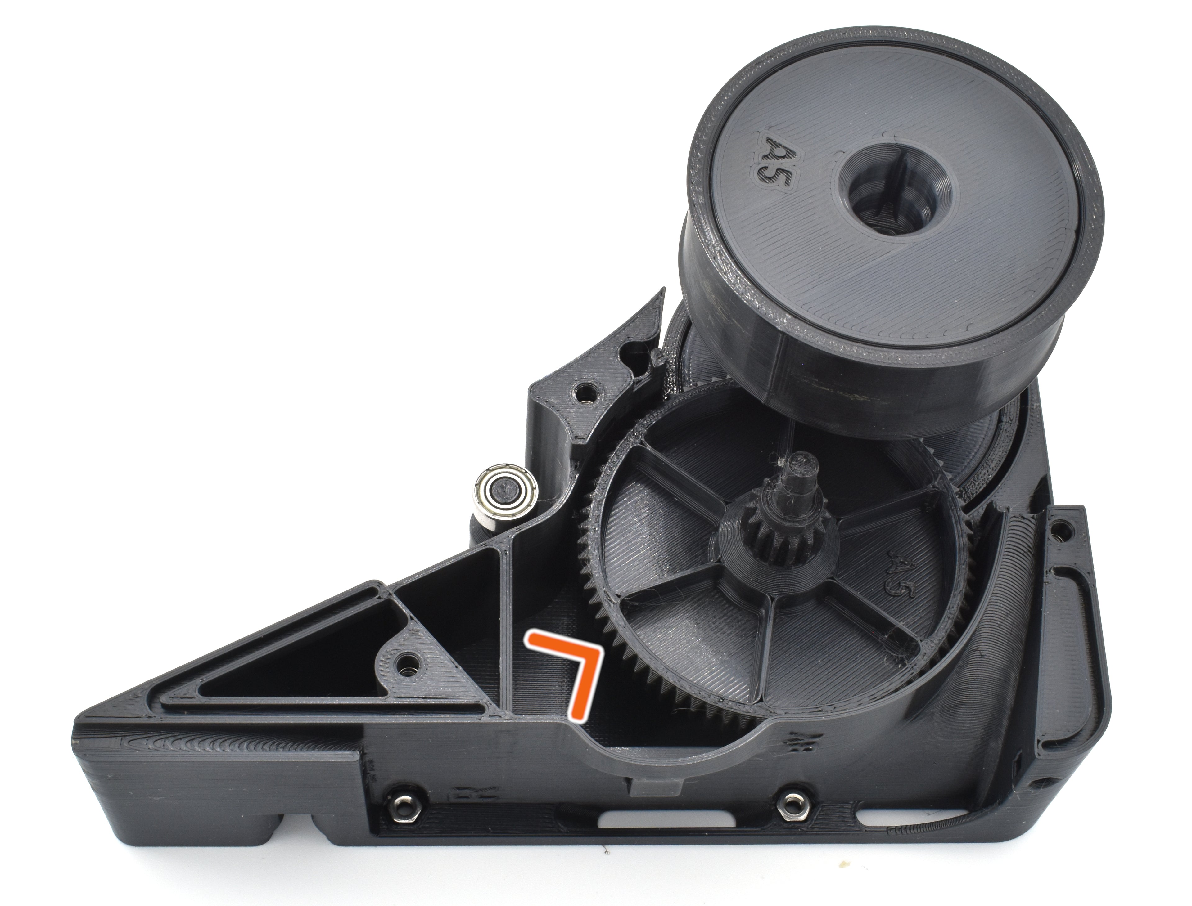 Attach the Front-roller and PTFE-Guide to the R-Shell. The Front-roller attaches to one of the bearings.