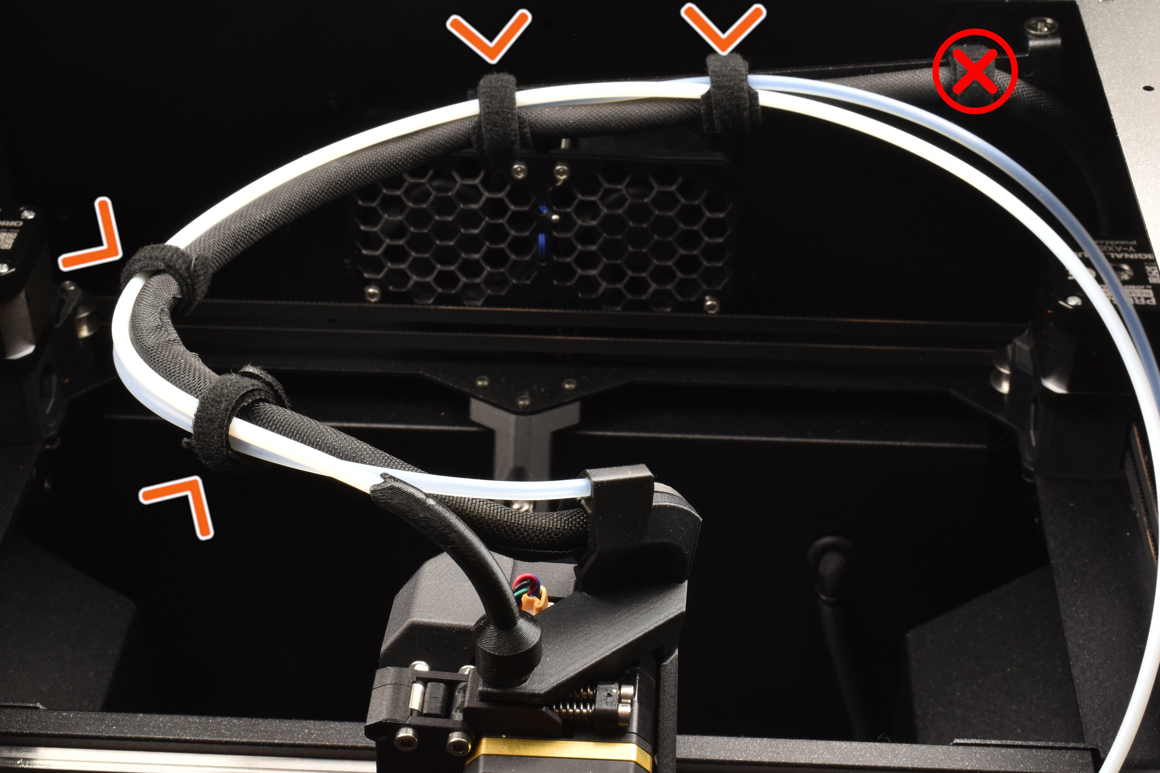 Important! Don't route the tube through the last cable-tie, see picture.