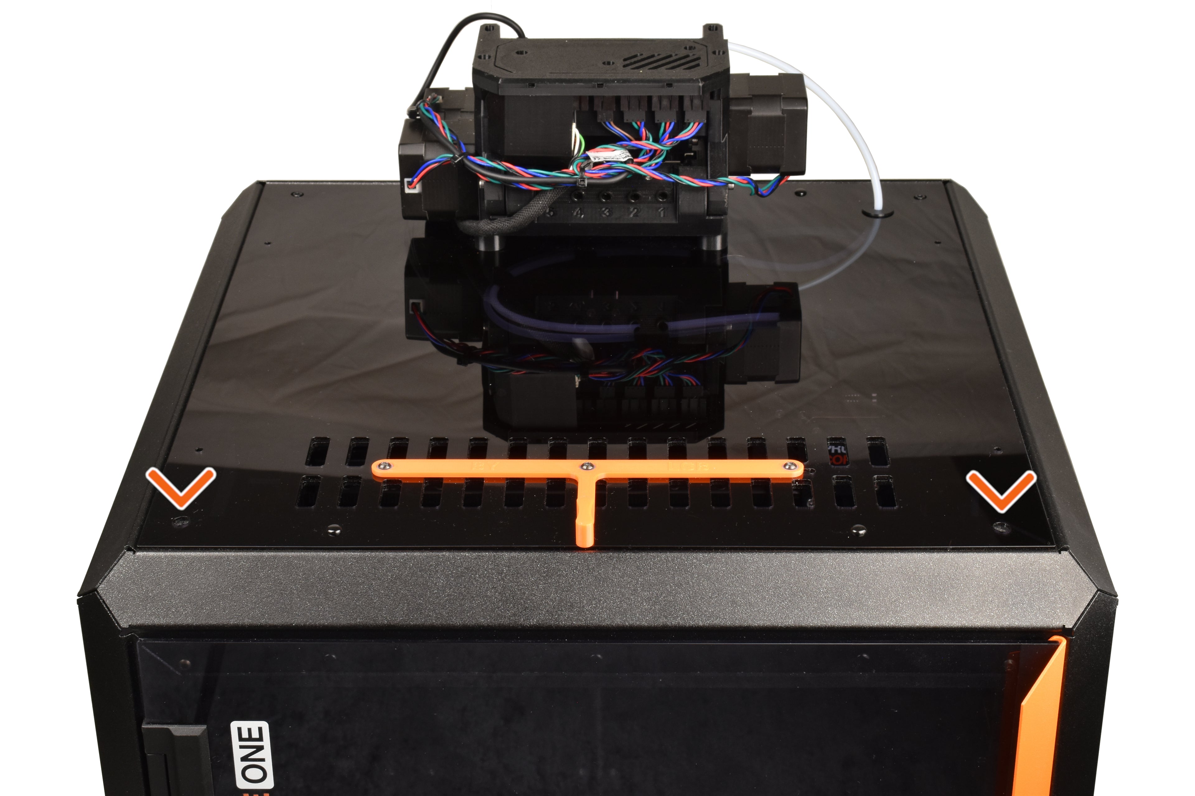 Untighten and remove the two highlighted screws on the top of the CORE One.